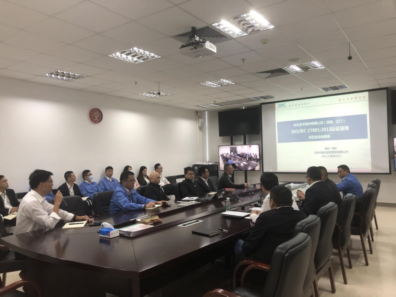 2022年4月19日,崇達技術(shù)股份有限公司旗下江門崇達電路技術(shù)有限公司ISO/IEC 27001:2013信息安全管理體系項目啟動,崇達股份胡總裁等領導親自參會為項目助力,深圳市康達信管理顧問有限公司項目經(jīng)理陶老師出席了本次啟動大會。
